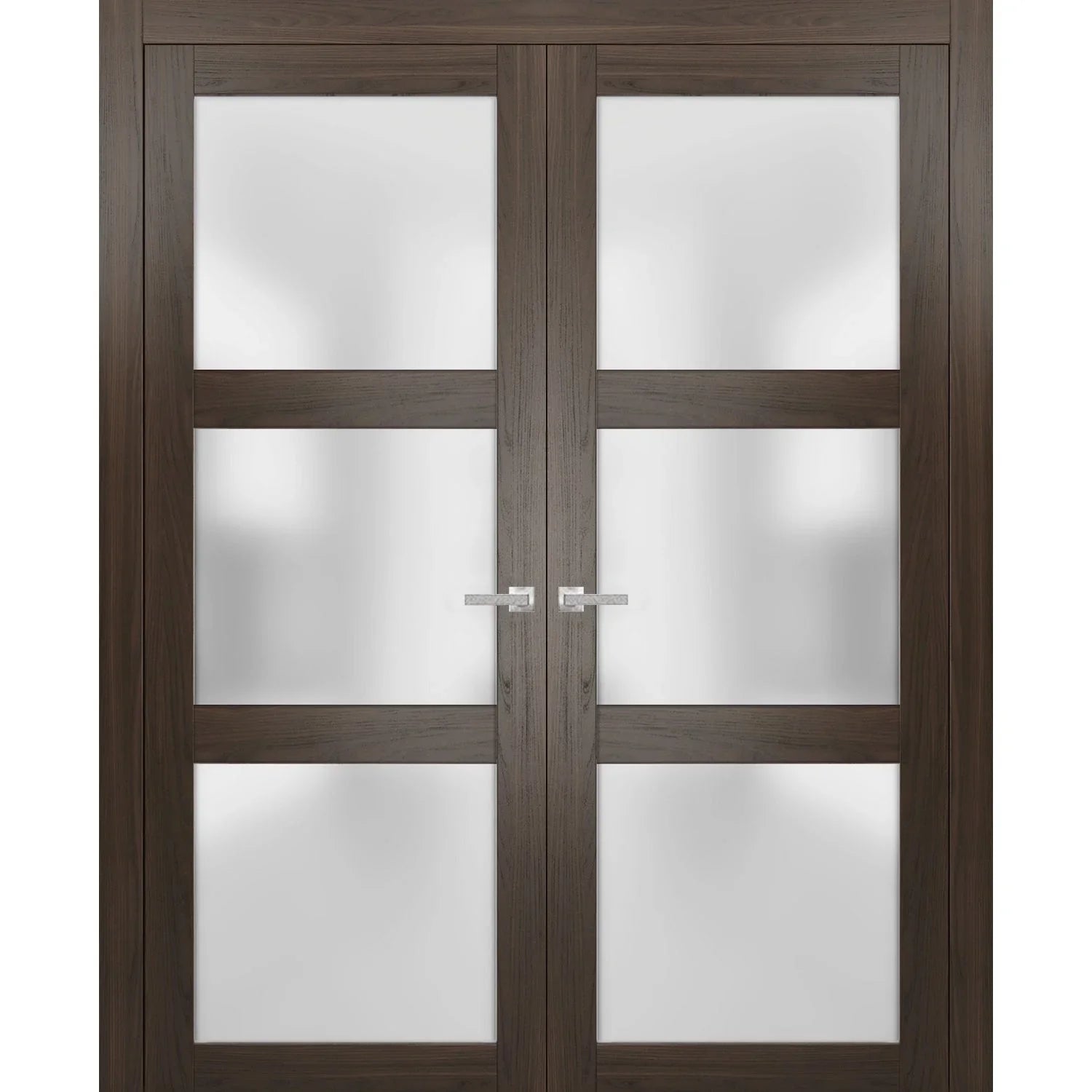 Solid French Double Doors 60 x 80 inches Frosted Glass