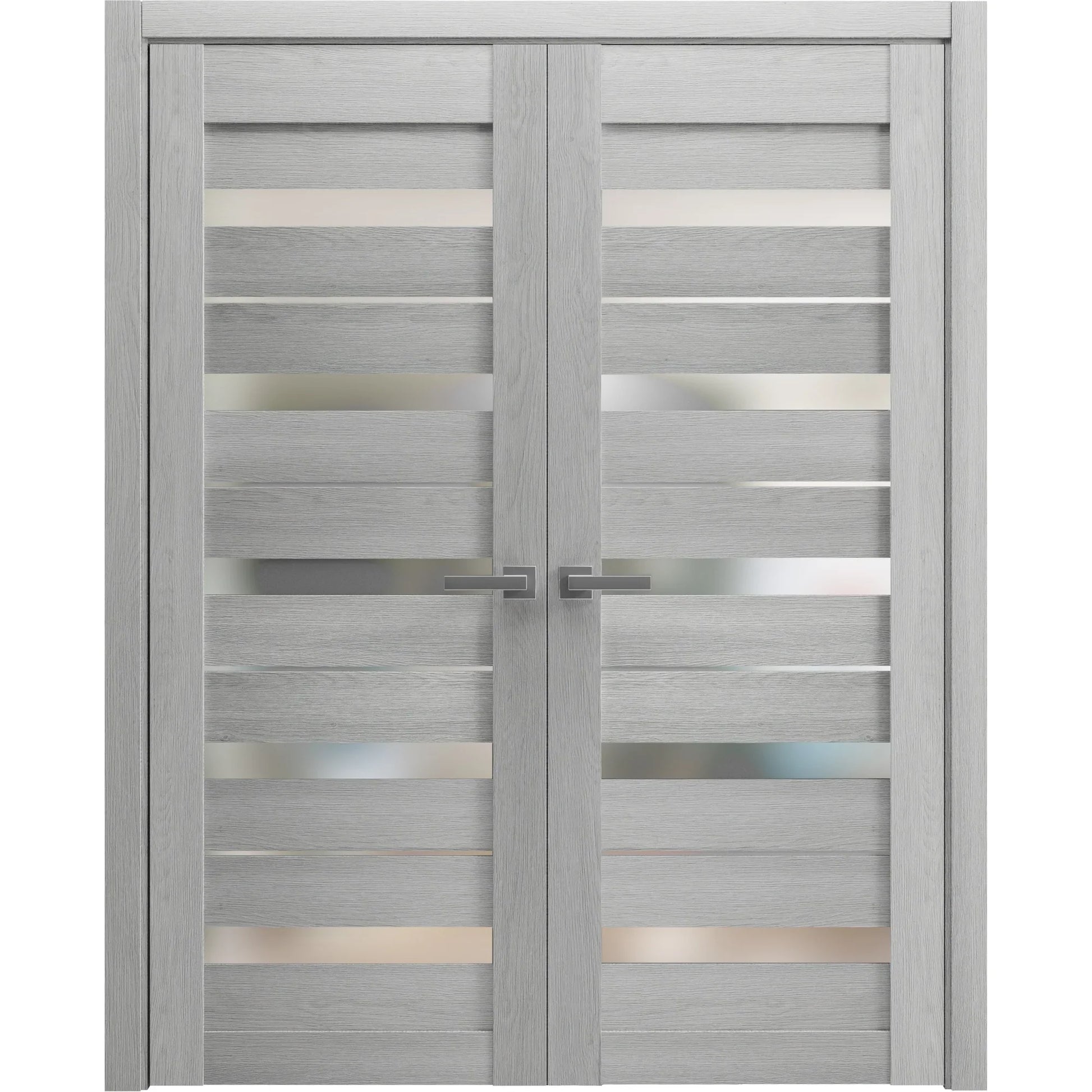 Solid French Double Doors 60 x 80 inches | Quadro 4445 Light Grey Oak with Frosted Glass