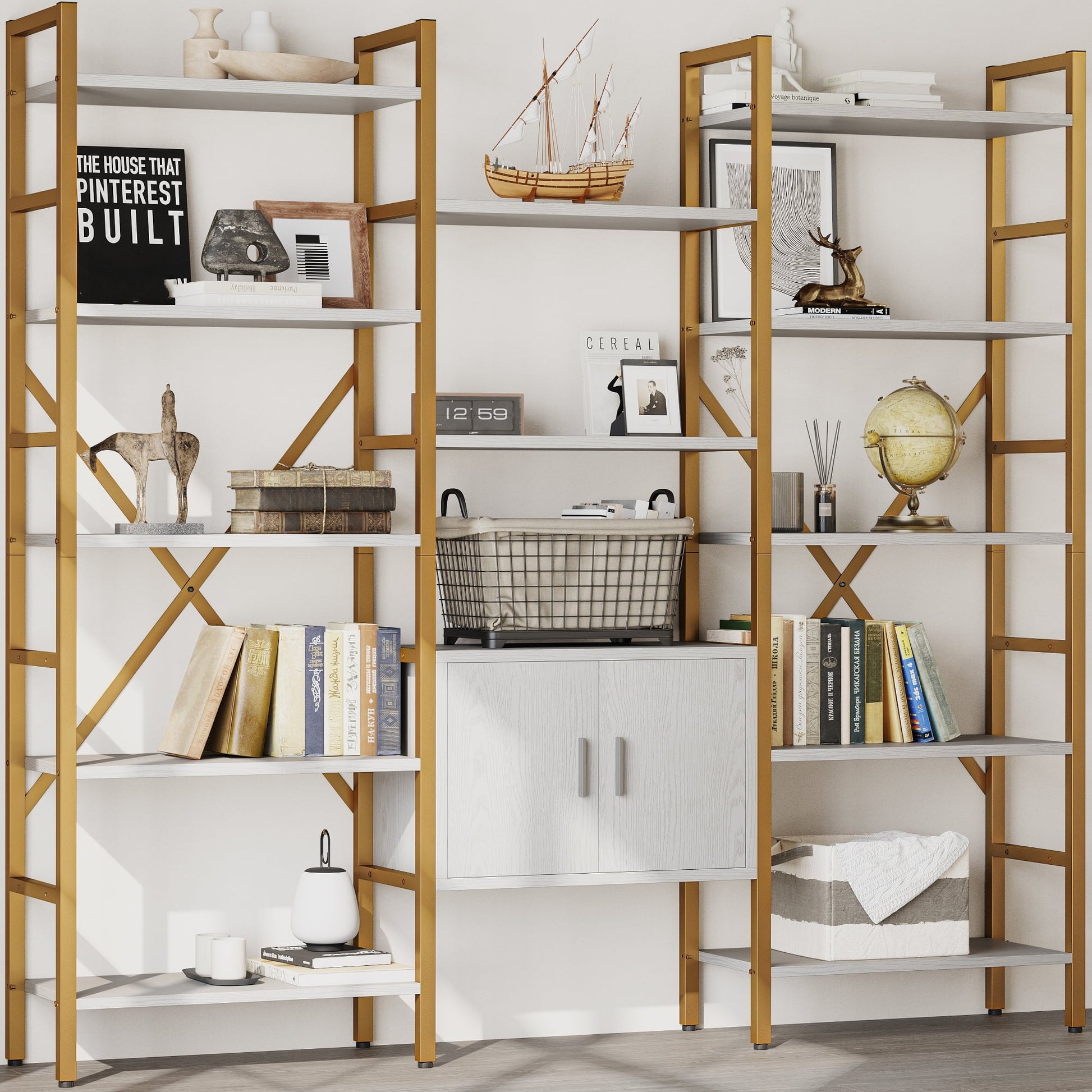 - [Multi-purpose Bookshelf] Bookshelf with storage can be used as display shelf, office shelves, plant shelf, storage shelves, and more. They are perfect for decorating your living room, bedroom, home office, kitchen, and entryway. The industrial color of the display shelf complements your existing furniture in the living room, bedroom, study, or office space.